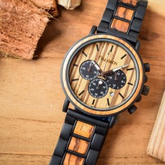 Koperta zegarka jest wykonana ze stali, natomiast obejma szkiełka oraz tarcza z drewna. Drzewa zebrano rosną w wilgotnych lasach równikowych Afryki. Zebrawood zdobią charakterystyczne paski rysunku, stąd też ich nazwa. Dekoracyjne egzotyczne drewno, używane w sposób ograniczony w meblarstwie oraz do produkcji przedmiotów specjalistycznych i tokarskich. Ze względu na swoją twardość, może być również stosowane do produkcji nart i uchwytów narzędziowych.