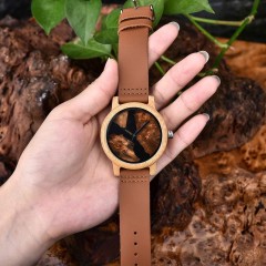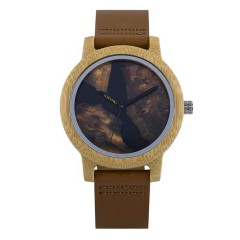 Ten zegarek został wykonany z drewna bambusowego, które jest twarde, a więc również odporne na stłuczenia czy zarysowania. Dodatkowo ma przyjemną teksturę, jest lekkie i eleganckie.