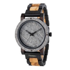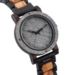 Zegarek drewniany Niwatch - kolekcja STONE grey - AFRICAN BLACKWOOD & OLIVE